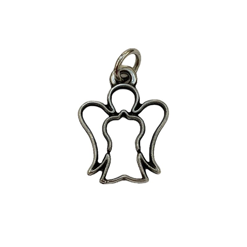 Ciondolo a forma di angelo misura 3 x 2 cm rivestito in argento.